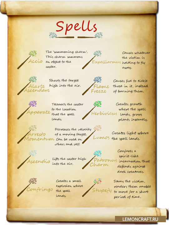 Мод по мотивам известной серии книг и фильмов о Гарри Поттере, с ним вы сможете скрафтить свою собственную волшебную палочку и овладеть большим количеством заклинаний. Для переключения между заклинаниями при использовании волшебной палочки применяйте сочетание Shift+ПКМ.